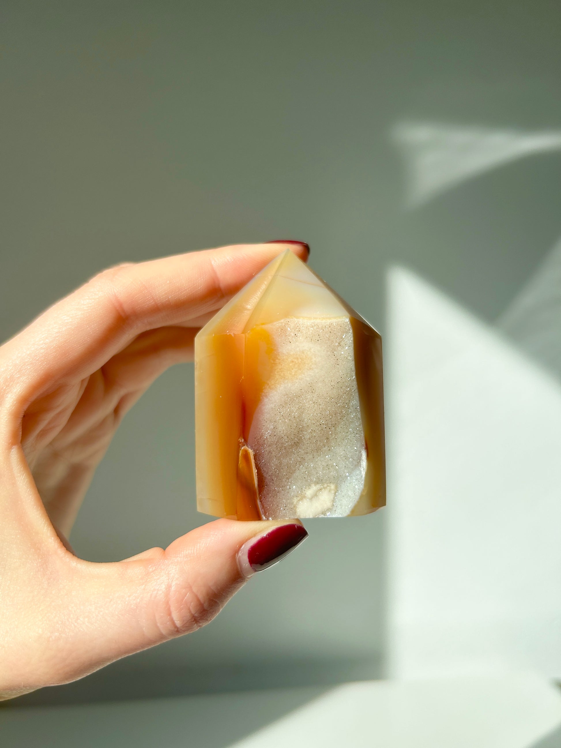 Der Achat kommt in unterschiedlichsten Farben vor und ist wunderschön gemustert - je nach Farbe werden unterschiedliche Eigenschaften zugeordnet: