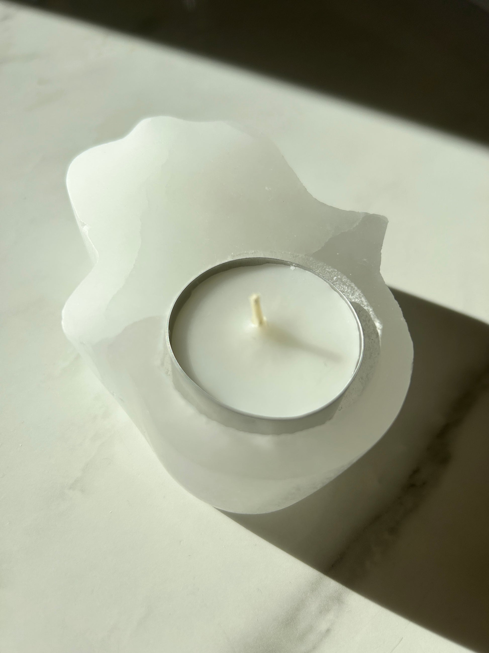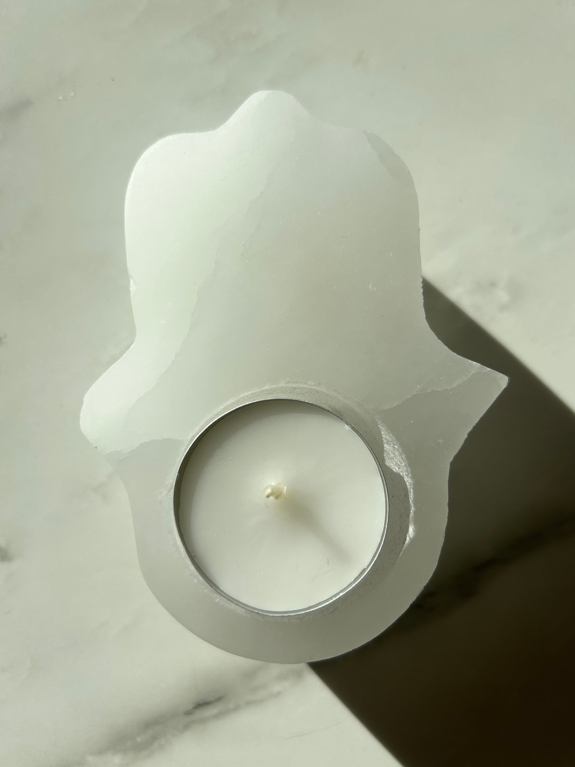 Selenit Teelicht Hamsa Hand