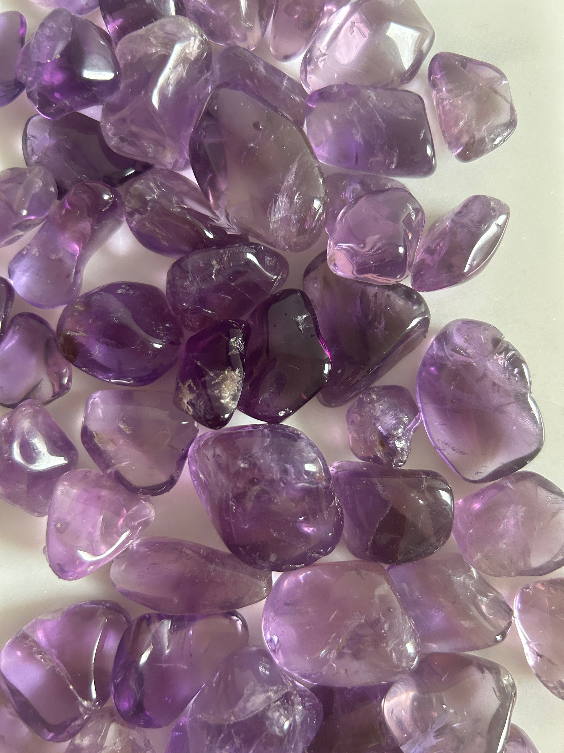Diese hochwertigen Amethyst Trommelsteine aus Brasilien eignen sich super bei sich zu tragen, zu verschenken oder einfach zu Hause aufzustellen. Hier sind die wichtigsten Eigenschaften von Amethyst: